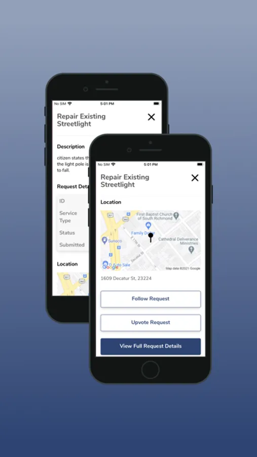 Welcome to the City of Richmond's RVA311 Citizen Services app! This app is designed to improve our service delivery efforts as well as our citizen engagement by providing citizens a way to report non-emergency incidents and submit service requests to agencies.