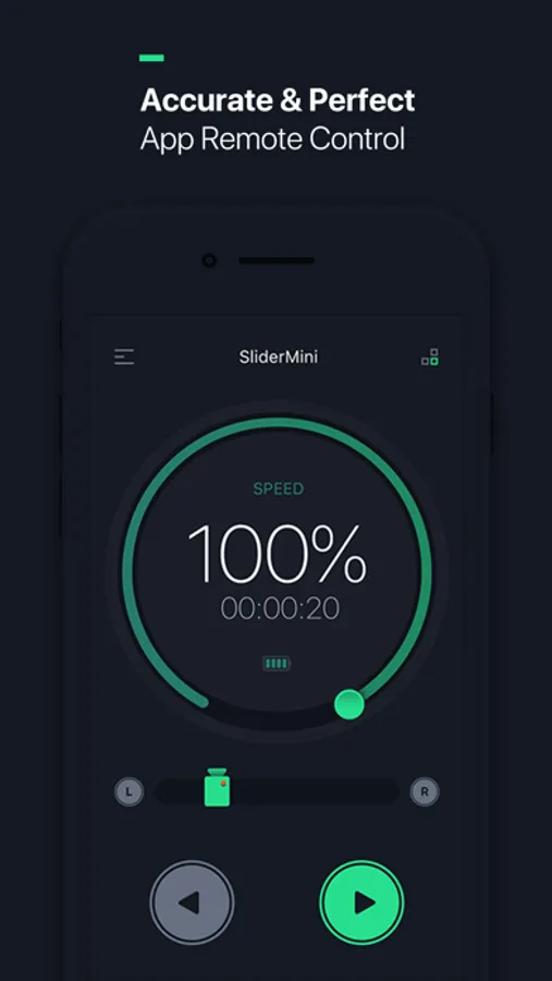 Stay Mode is specifically added to keep the slider un-moved when shooting time-lapse or stop motion videos, so users can have more smooth and stable footages. Tap “Stay” on the screen, the slider will stop moving until you switch back to “L-R” slide mode. We also optimized the built-in settings so it is more user-friendly when shooting time-lapse and stop motion videos.