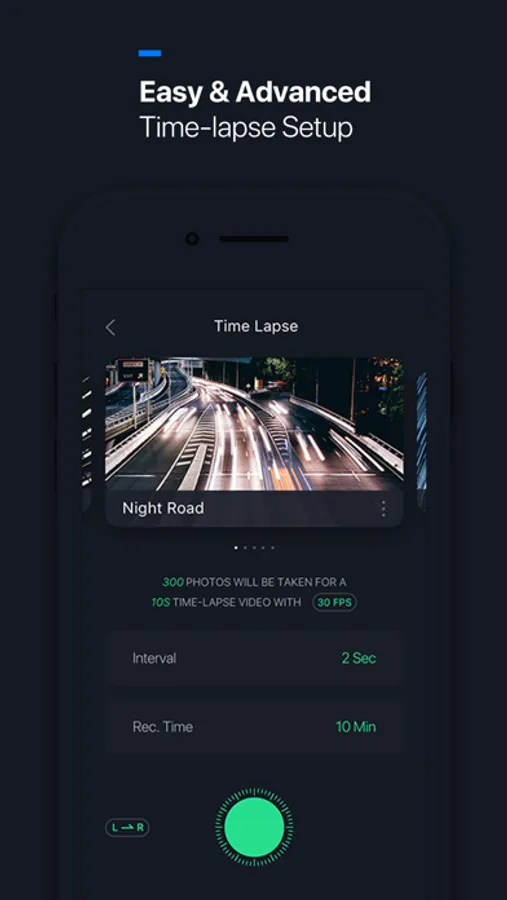 There are 10 preset time-lapse modes built-in the app which allows you start catch cinematic time-lapse videos in a single tap. You can adjust the preset settings of those modes and it’s also available to customize your own time-lapse library. Time-lapse has never been easier.