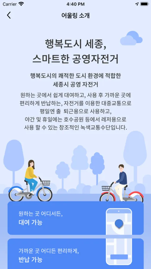 어울링 앱을 이용하시면 세종 공영자전거 어울링을 더 편리하고 스마트하게 이용하실 수 있습니다.