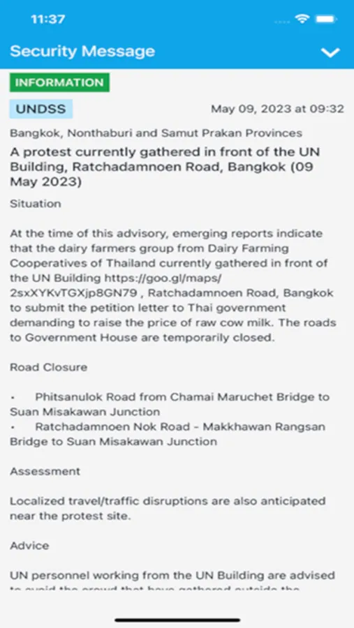 eTA provides travel advisories including security related information to anyone who may need to deal with the United Nations in their business while not necessarily being a staff member of the United Nations. The app offers the following features: