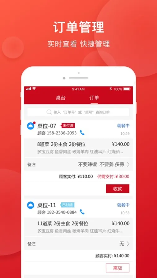 咕咕点菜宝是一款配合咕咕收银系统使用的服务员点菜应用,致力于为餐厅提供方便快捷的点菜下单方式,轻松搞定店内桌台预览、移动收款、订单查看,帮助餐厅更好地服务顾客。