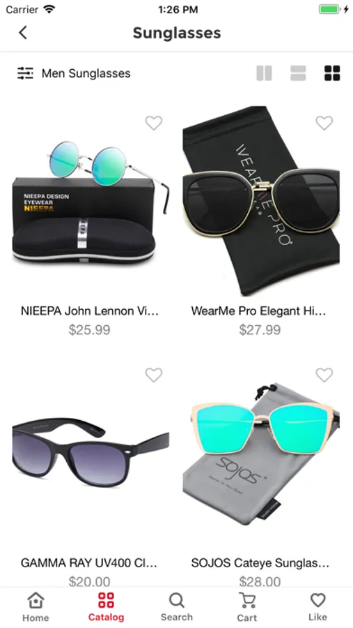 In our app your can find popular sunglasses. Our company has 16 years production and export sunglasses reading glasses and optical glasses our team have enough experience to supply all the customer from the world the best serivice the best price with the best quality.