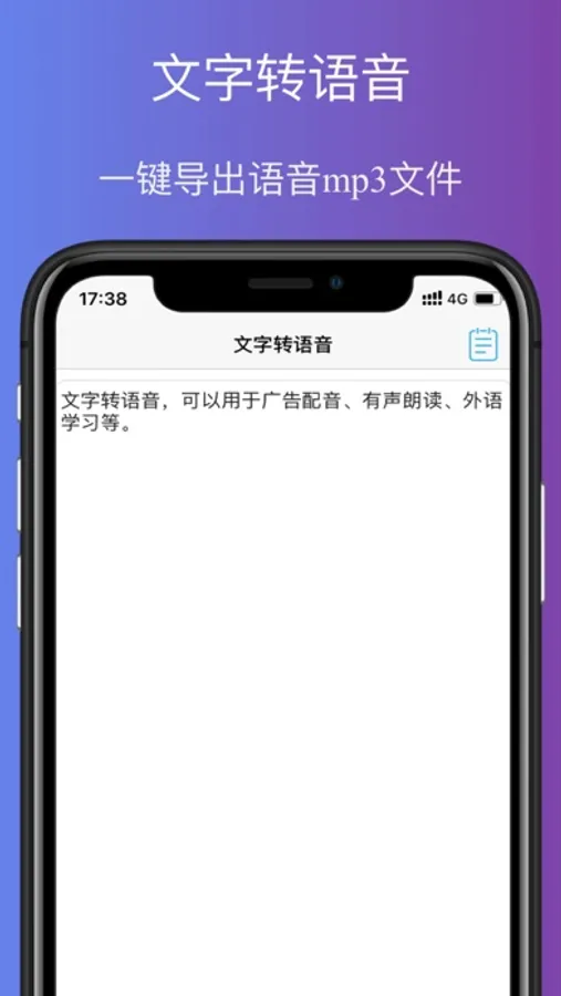 「文字转语音」在线语音朗读、专业广告配音软件,支持添加背景音乐,几十个配音师可以选择,支持一键导出语音mp3文件。