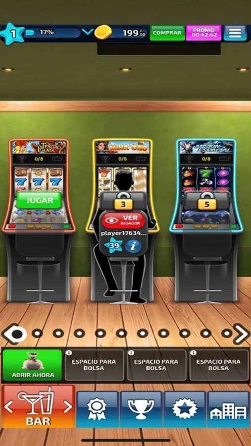 Download and play the best slots. The authentic, those of the Bar. Enter the bars street and unlock all the machines. You choose how to move forward. Collect prizes, go up in the ranking and collect all the achievements.