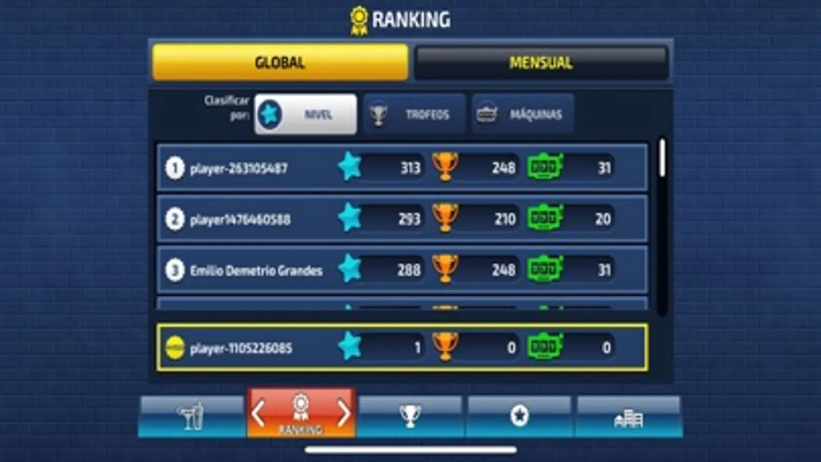 - Ranking. So you can compite with your opponents. Global and monthly. By Level, by Trophies and by Machines. The whole range, so that you compete in what you enjoy the most.