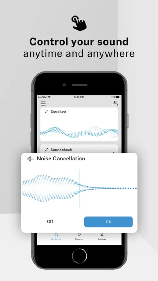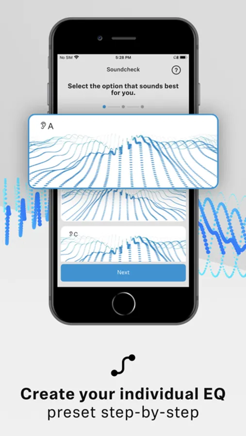 - Sound Check – Guided process helps you find the best EQ setting for your personal hearing