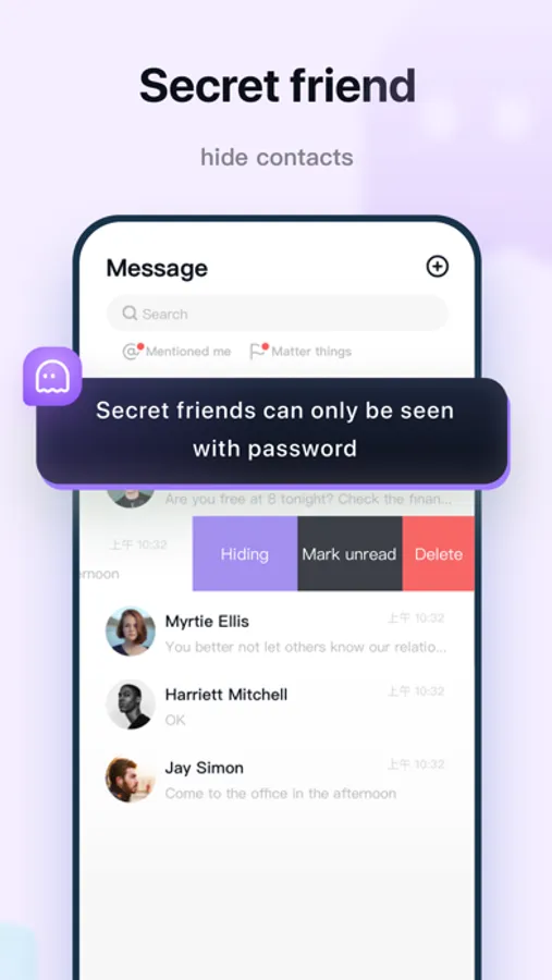 5.Secret friend: you can set a friend as a secret friend. After setting, the friend will disappear from the message list and address book list, making it more private.