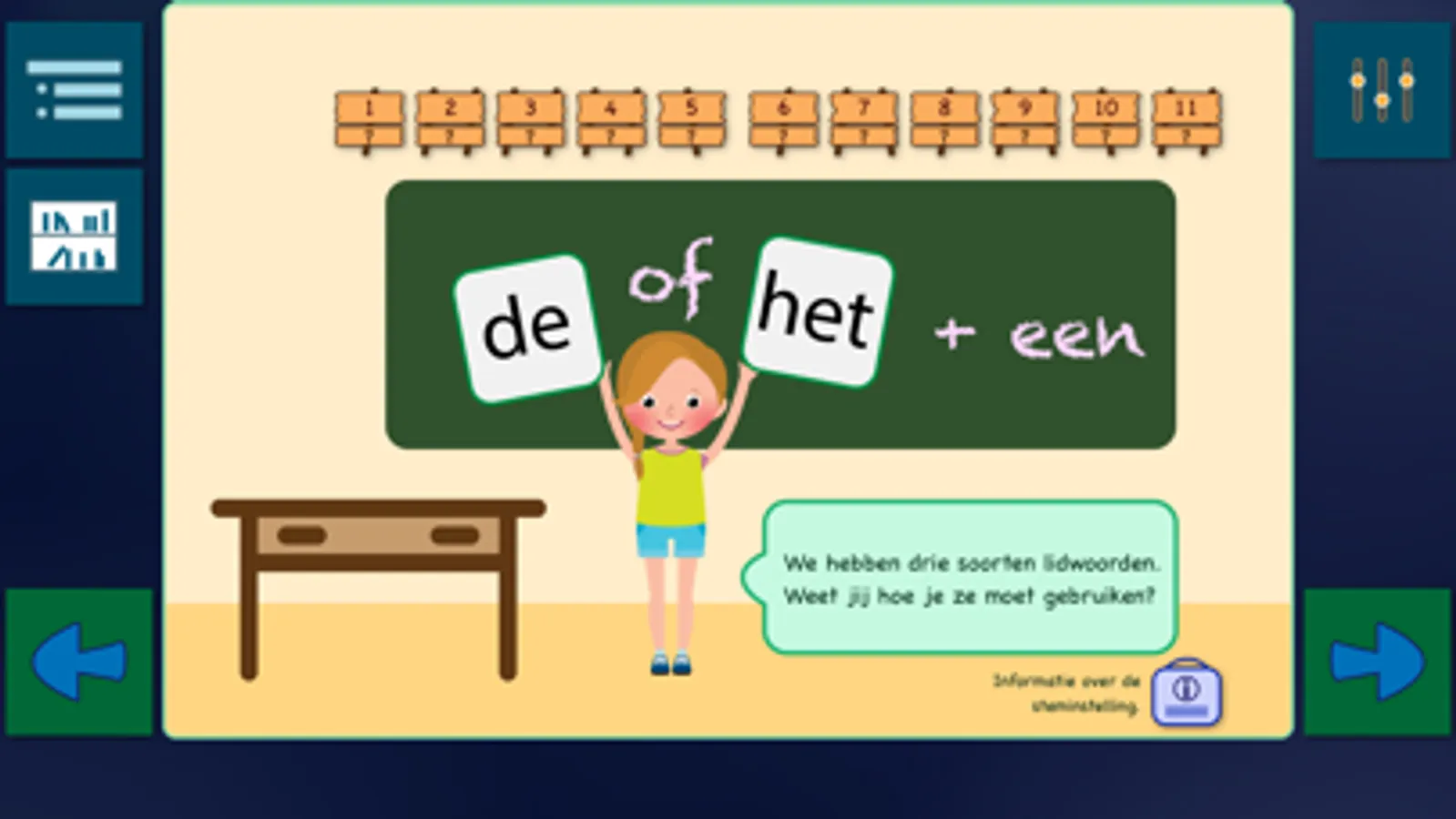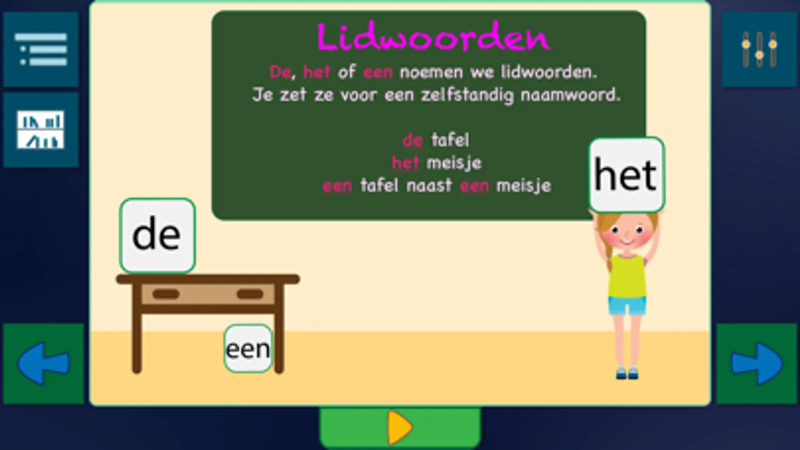 In deze app kunnen kinderen op een speelse en boeiende manier oefenen met het gebruik van lidwoorden in de Nederlandse taal. De Nederlandse taal heeft geen vaste regels voor het gebruik van lidwoorden, en vaak wordt gezegd dat dit taalgevoel zich vanzelf moet ontwikkelen. Maar met deze app kunnen we dit taalgevoel een magische boost geven!