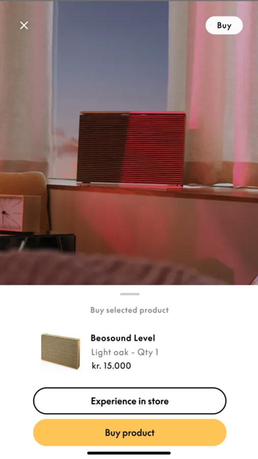 Book in-store demo or purchase in app - Book an in-store demo in your nearest Bang & Olufsen store or purchase directly from the app.