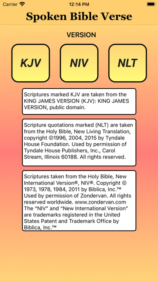 Listen to your favorite verses or chapters, find any verse in three bible versions, or check actual wording of any bible verse with the new free app, Spoken Verse.