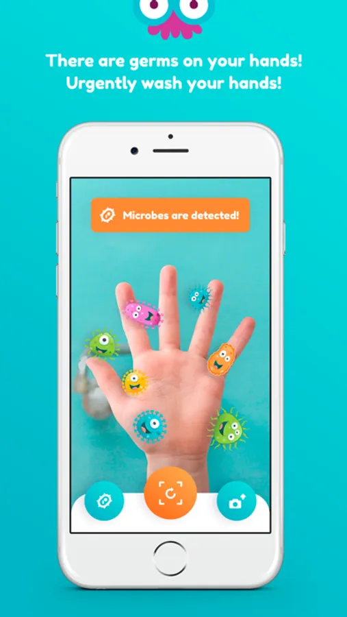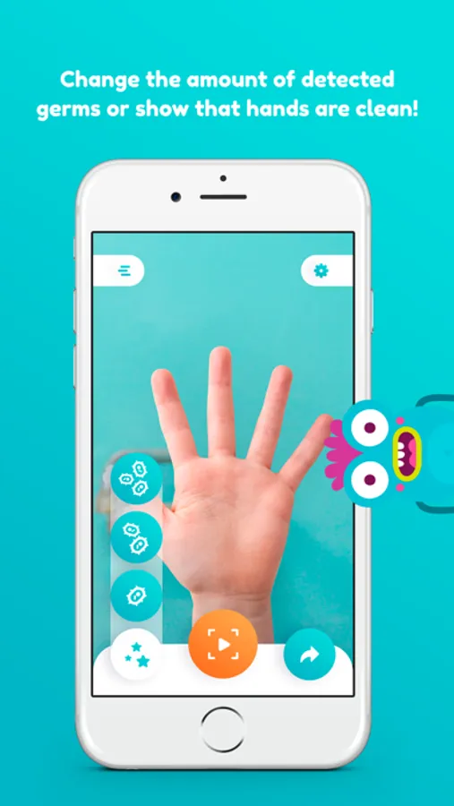 Use share button to send 'before' and 'after' photos to your relatives and friends. If kids remember ordinary microbes, use another set: we have developed both sweet and evil ones.