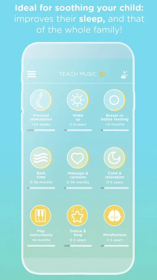 With over 2,000 progressively adapted listening exercises by experts, Memima Baby is a tool for the speech learning process and early musicalization. In addition, it reduces infant anxiety, soothes the baby's crying, and is also ideal for helping adults to relax.