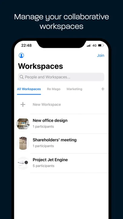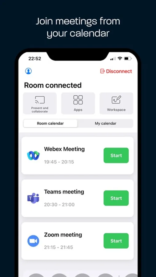 Join a meeting remotely via invitation or pin code, or by scanning the QR Code.
