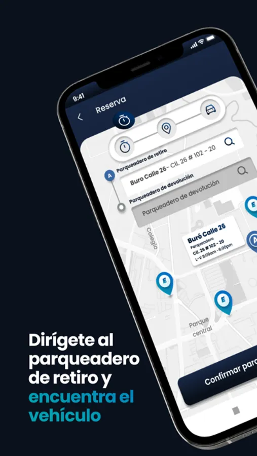 Busca en el mapa de la aplicación el estacionamiento más cercano,