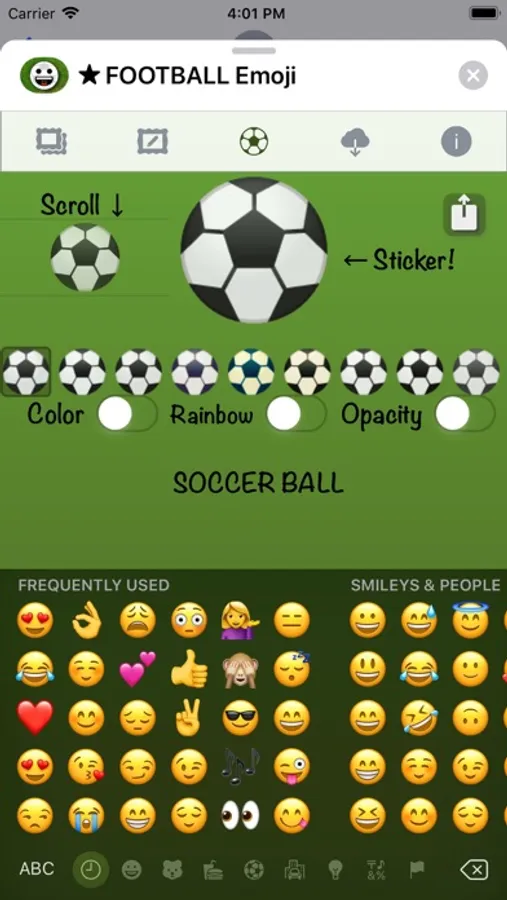 - Create stickers from the standard emoji keyboard. All emojis are available!