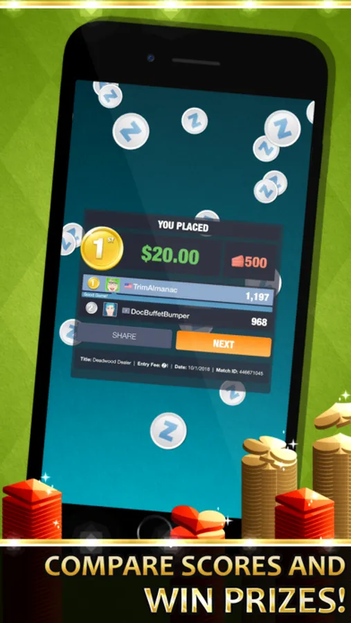 Challenge people from around the world with Skillz, a competitive platform. With Gin Solitaire, YOU are in control of the game's outcome. Both players get the exact same card sequence. It is up to you to create the best melds and win the competition!