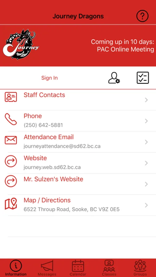 * Conveniently e-mail, phone, or navigate to the school, or reach the website or social media.