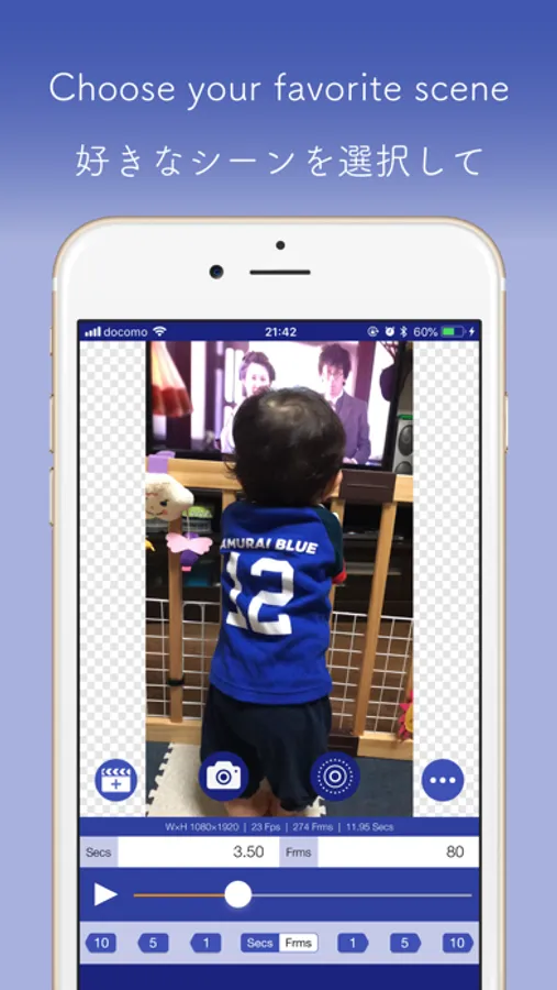 You can also select your favorite scene with the slider, you can also select your favorite scene in units of 1 second or 1 frame.