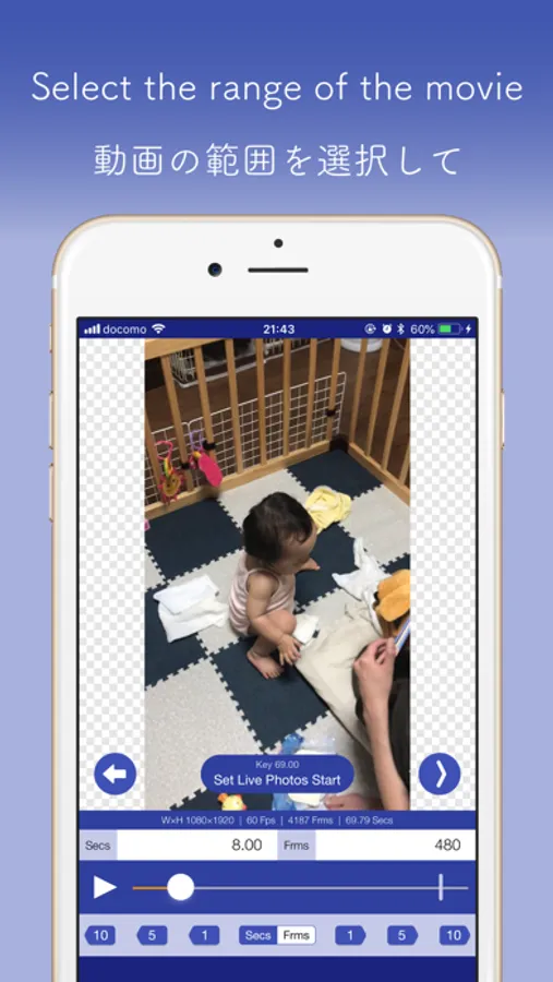Select the movie, display the scene you want to be the key image, decide the start position and the end position, tap the save button!