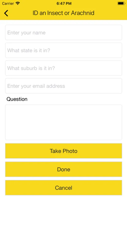 Users can use the app map to view/search locations for active eWasp nests or sightings and European honey bee hives. By tapping on the yellow & black pin, the word “eWasp Nest” or “eWasp Sighting” or “Honey Bee Hive” will be displayed. Once the eWasp nest or sighting has been actioned, the pin will disappear from the map. Active European honey bee hive pins will remain active on the map.