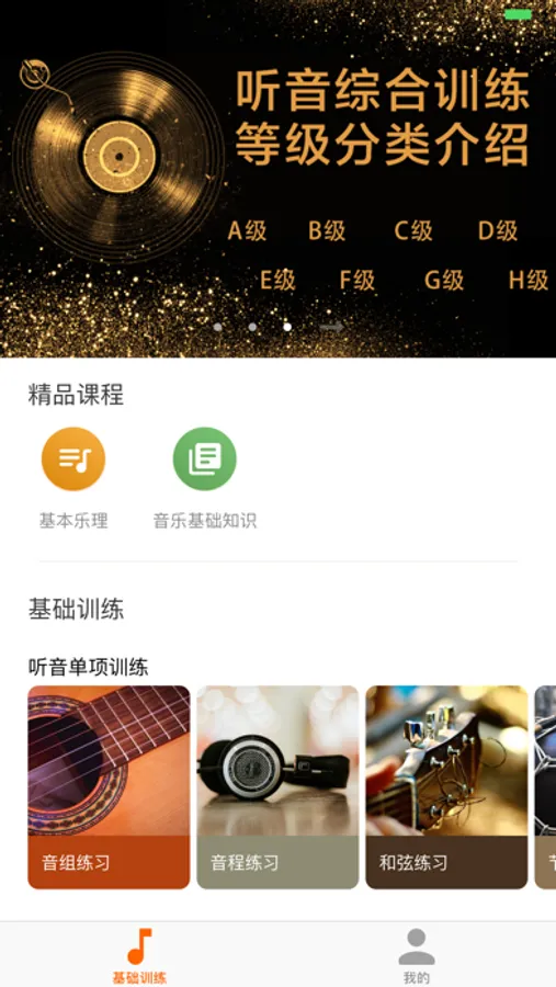 音乐基础训练包含:(已开放)听音、视唱、基本乐理、发声练习、各院校模拟考试训练,(研发中)和声、曲式分析,等专业音乐学习所必备的辅助训练,可有效地帮助音乐学习者提升音乐基础综合能力。