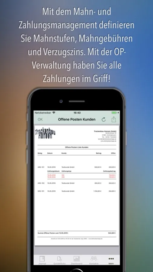 Dank der Offenen Posten Verwaltung und dem integrierten Mahnmanagement haben Sie immer den Überblick über Ihre finanzielle Situation.