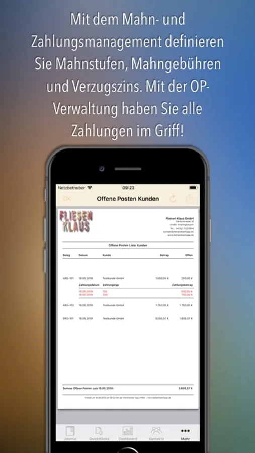 Dank der Offenen Posten Verwaltung und dem integrierten Mahnmanagement haben Sie immer den Überblick über Ihre finanzielle Situation.