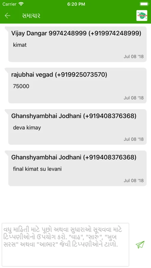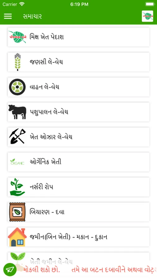 Aa application dwara koi pan khedut athva vepari kheti athva khetine lagti mahiti ane prashno puchi shake che. Kheduto ahi mafat ma potani le vech mate ni jaherat muki shake che. Aa application ma mukeli koi pan mahiti je te khedut athva to te vaprashkarta ni che, ena mate application teni choksai mate javabdar rehshe nai.