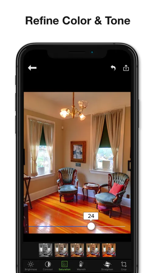 The app is easy to use and does all its lighting effects automatically. You can also use the photo straightener to fix perspective issues.