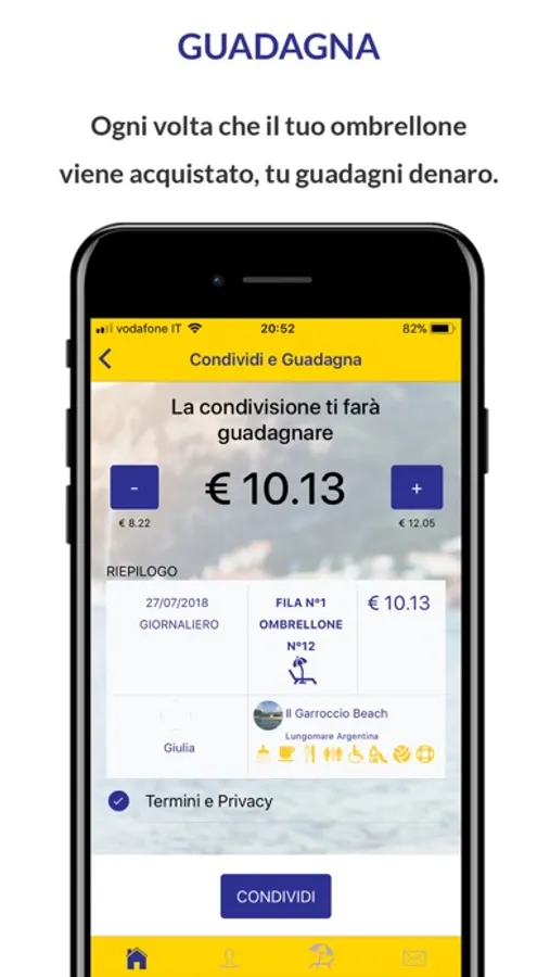 Se hai un abbonamento e capita anche a te di non usare a pieno il tuo posto in spiaggia, da oggi potrai metterlo a disposizione ad altri bagnanti nei momenti di inutilizzo in cambio di denaro. Crea il tuo annuncio e in pochi minuti il tuo ombrellone sarà online in attesa di essere acquistato. Facile quanto geniale!