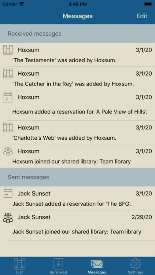 This App is meant to keep track of your own real paper books and to let others know what books you have and vice versa. If anyone is interested in your books they can use this App to let you know. In the same way you can ask them to share the information about their available books.