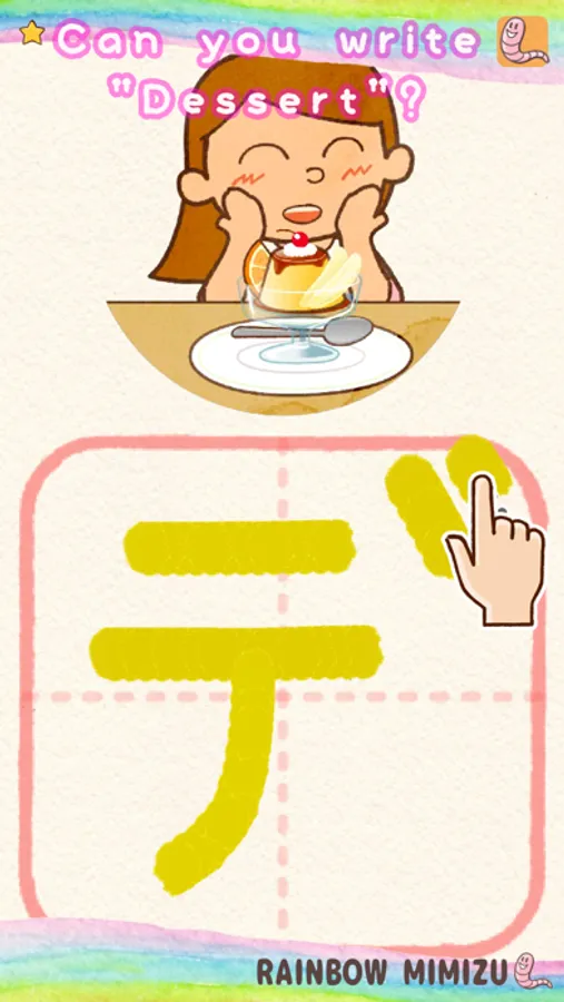 By tracing dashed line, your child learn to write perfect Katakana, all while receiving encouragement from cute characters!
