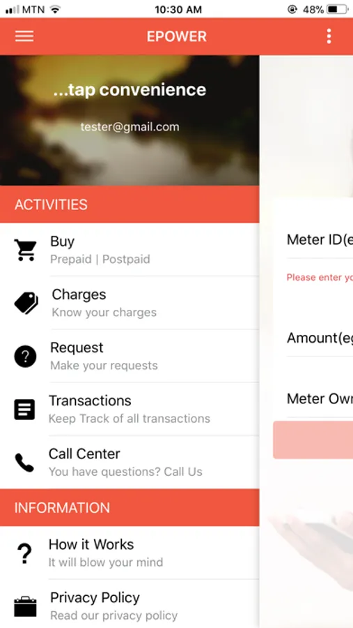 Epower app is a mobile application that allows the purchases of prepaid and postpaid, both electricity and water, Irrespective of where you are in Ghana, and the time of the day. You simply provide your meter ID or account number and the amount you want to buy, and BOOM !!! your light is back, or your water starts flowing. You can also request for your credit balance and meter consumption. It is very easy and convenient to use.