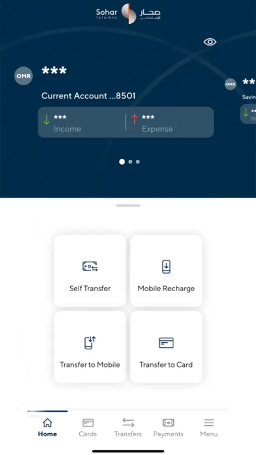 • Transfer funds to your own linked accounts in Sohar Islamic Mobile Banking
