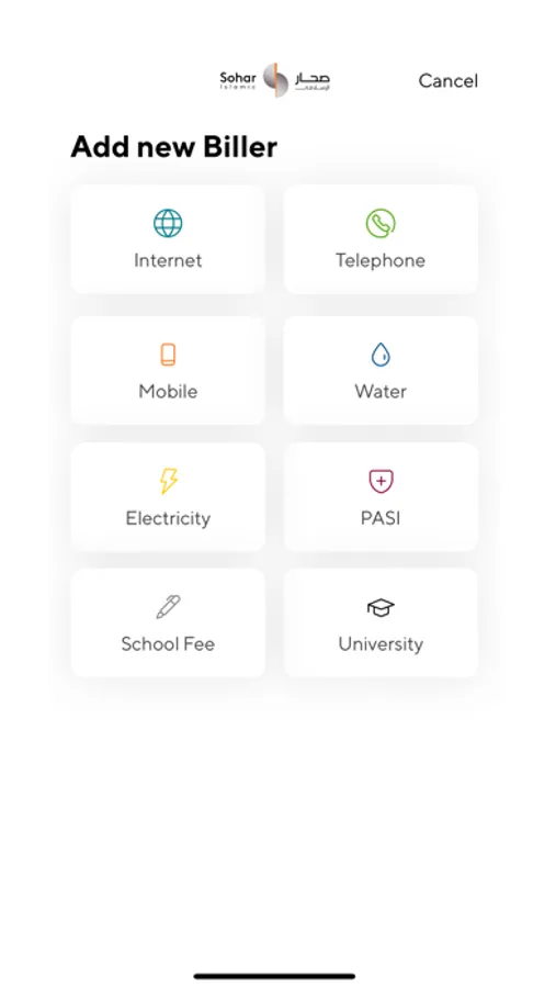 • Transfer funds to any Sohar Islamic Mobile Banking account