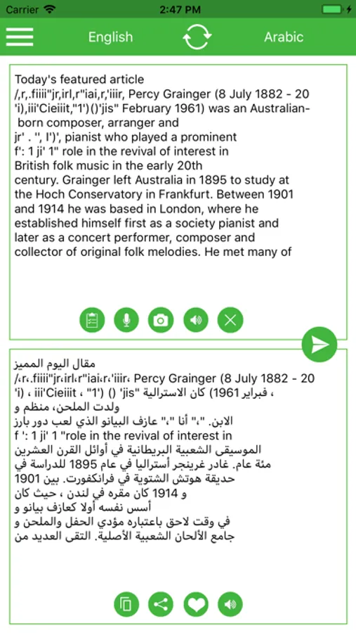 - Hear translated text in Arabic or English