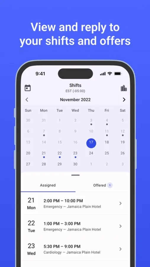 The Koroid app allows professionals to input their schedule and availability, navigate vacancies and unfilled shifts, communicate with HR administrators, and track their work history. The Koroid experience enables the highest quality flexible work, at the lowest cost - with patient care at the center.