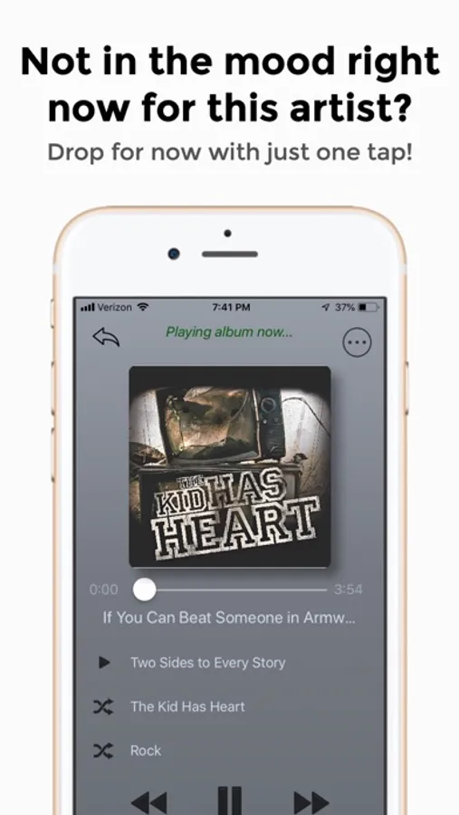 • Start over by reshuffling your library. (Any genre, artist, or album removed earlier comes back when you reshuffle.)