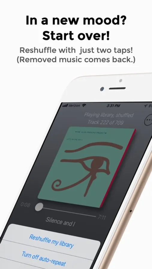 Your music, shuffled well. My Shuffler creates a shuffled music queue, just for you! The simple user interface lets you take actions like skip to the next song, ignore a genre for now, or just listen to a particular genre or artist. Hear a song and think of the album? Play the song's album from the beginning. Then come back to your shuffled music, right where you left off. In a different mood now? Start all over by reshuffling your library. Do all this from one simple interface that just takes a minute to learn.