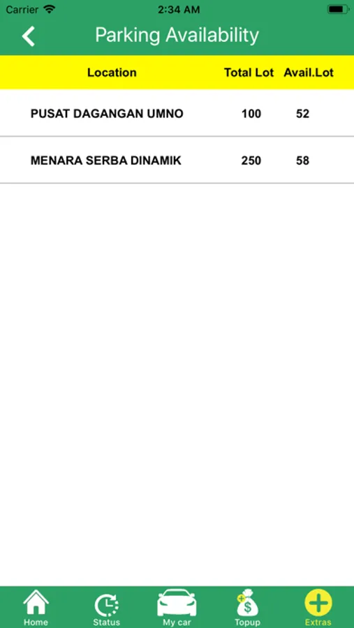 * Live parking status updates;