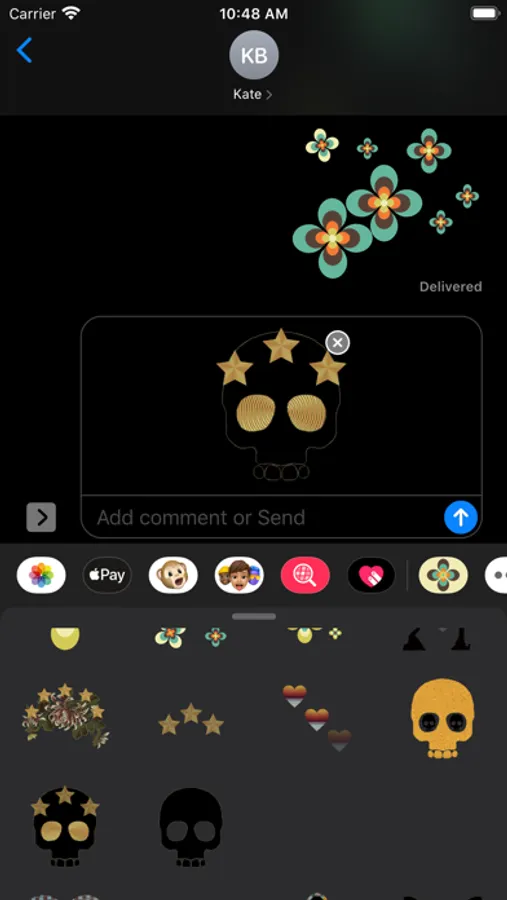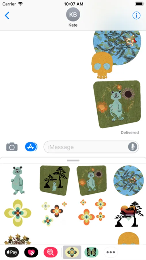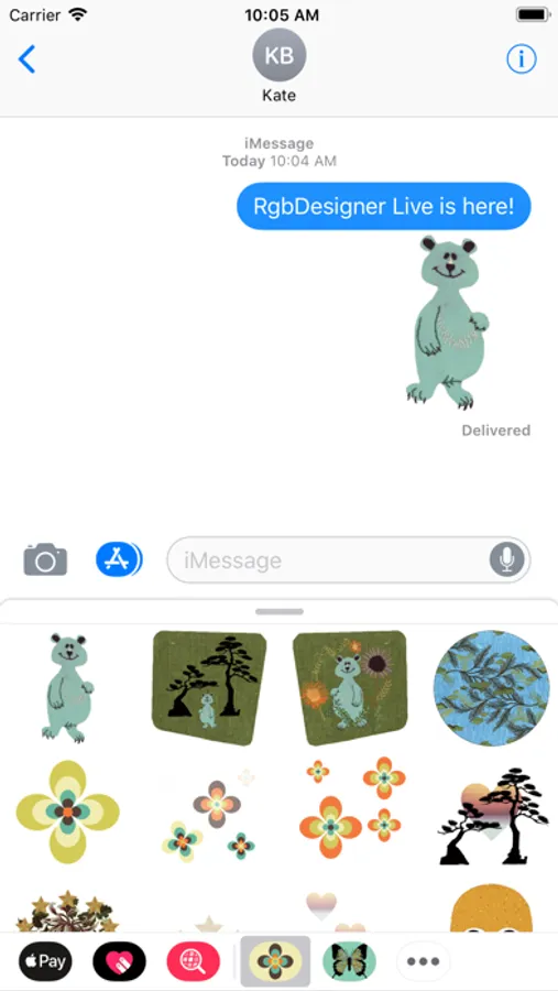 Bring your iMessages to life with this cheerful mash up of animated stickers. This collection includes animations from our rgbDesigner Stickerbook, Skulls and Silhouette apps plus some adorable 'Pink & Blue' animations from an up and coming project and a very nice retro daisy set. Pretty much everyone needs to see a dancing blue bear. 21 Stickers.