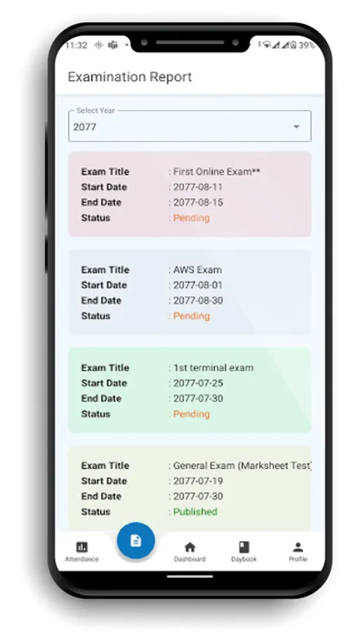 This feature is designed so that you can track the record of the examinations held at the school. For example, you can view the start and end date of the examination and also the status of the result i.e. if the result is published or not.