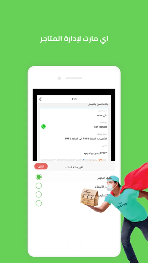 يمكنك تغيير حالة الطلب الي ( جاري العمل , في انتظار التوصيل , تم التوصيل , إلغاء ) بضغطة واحدة