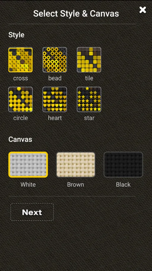 Create stylish cross stitch in different sizes from photo and camera. Support stitch output size : device's wallpaper, square and wide.