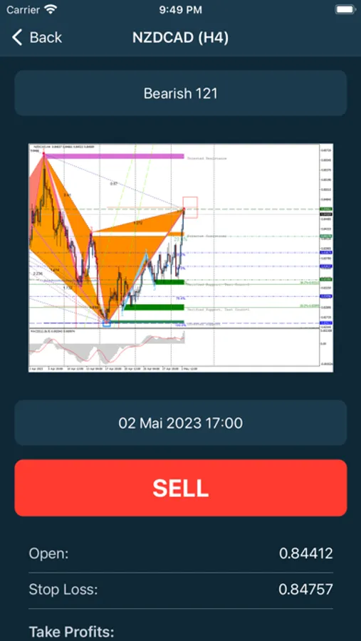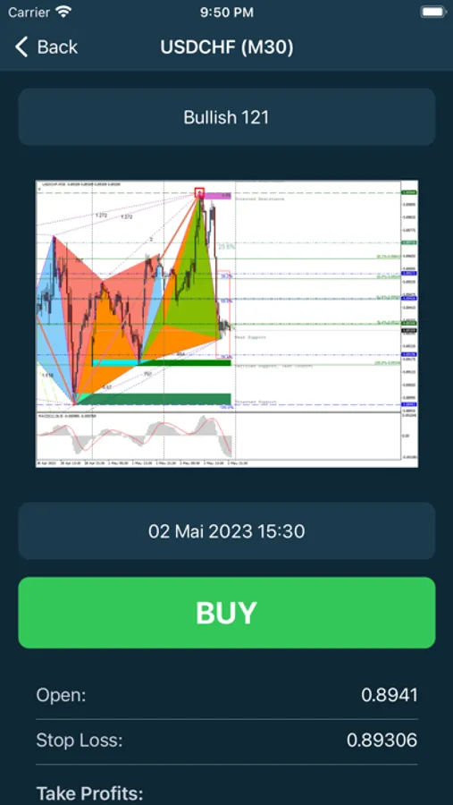 The app provides you with detailed information about the detected patterns and visual support in the form of screenshots of each pattern. These screenshots display the pattern directly on the chart, helping you better understand the patterns and make informed decisions.
