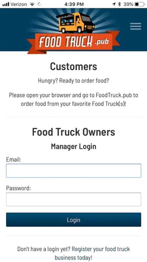 Food Truck Pub is a free ordering app for Food Truck Owners and allows them to register in our directory and then Go Active when they are actively taking food truck orders. Food trucks can enter their business information as well as update their menu, food images, pricing, and sales taxes. Food trucks using Square POS system can sync their menu with Food Truck Pub.