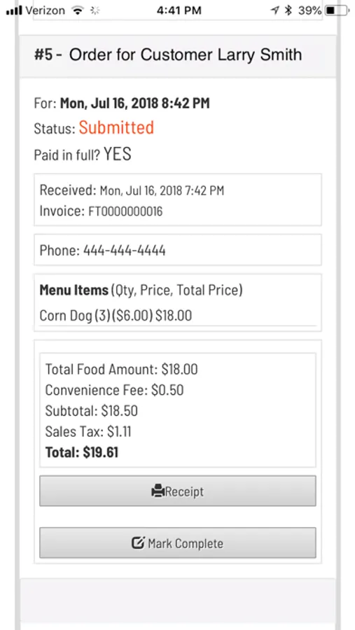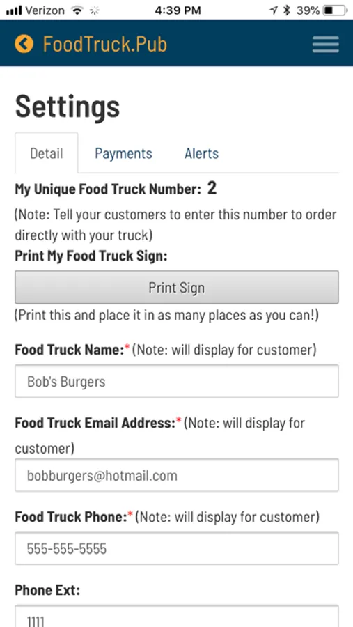 Next, food trucks can subscribe to a variety of order alerts as well as see real-time orders come in through the app and even print food receipts to any bluetooth or wireless printers they may have in their truck.