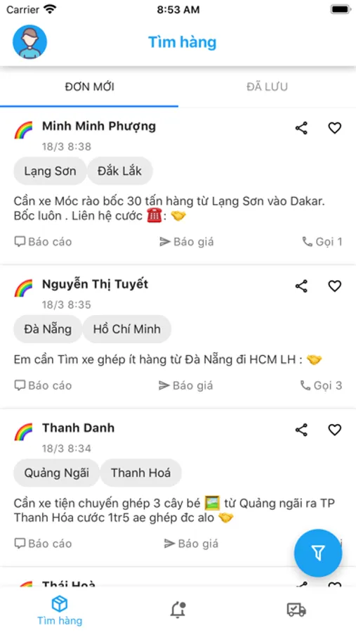 THN - Tìm-hàng-nhanh biết chủ hàng có rất nhiều công cụ để đăng đơn tìm xe vận chuyển nhưng cách dễ dàng nhất là sử dụng ứng dụng được thiết kế riêng cho những nhu cầu vận tải hàng hóa. Bạn có thể dễ dàng quản lý, sao chép, thiết lập trạng thái đơn hàng và quan trọng hơn hết một khi đơn hàng được đăng thì ngay lập tức hàng tá đầu xe đang sử dụng app sẵn sàng phục vụ bạn.