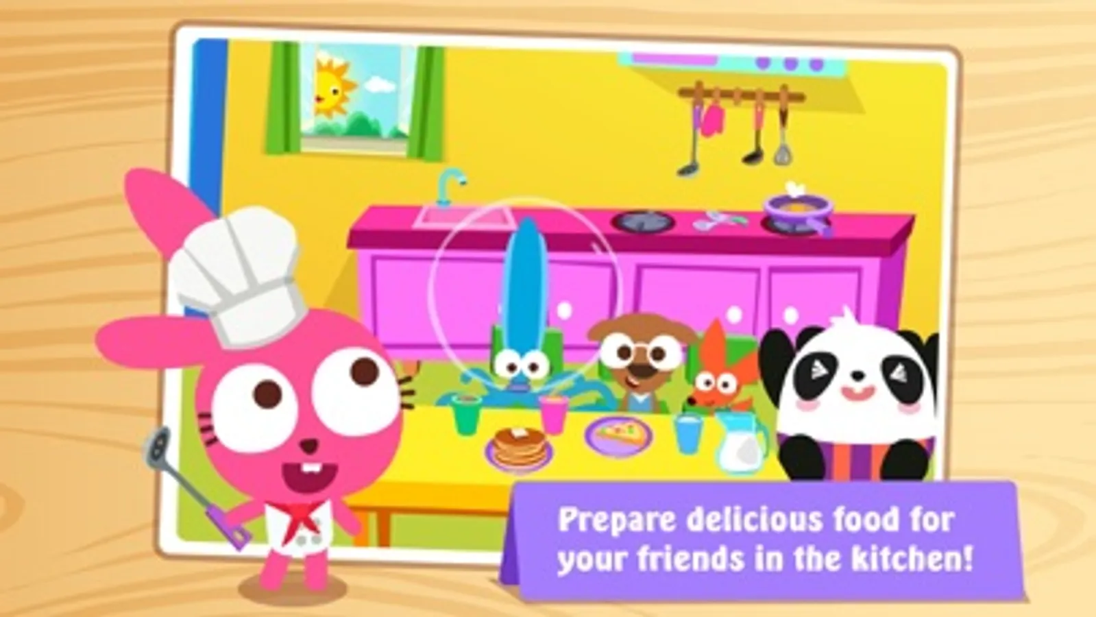 What’s Purple Pink the Bunny’s day like? Does she want to watch some TV or play piano? Will she host a party in the kitchen? How about a barbecue party in the garden? Oh here is a secret! You could even catch fish in the pond! There are so many ways of playing!
